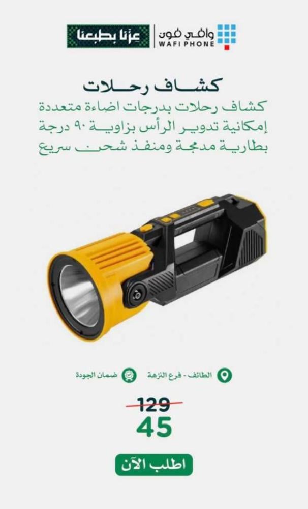 مزود بدرجات إضاءة متعددة لتناسب مختلف الاستخدامات، مع إمكانية تدوير الرأس بزاوية 90 درجة لتوجيه الضوء حسب الحاجة.